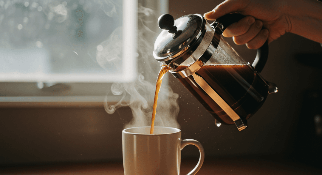 Prompt: Action shot, photorealistic, a person's hands gently pouring freshly brewed coffee from a French press into a mug, steam rising. Natural morning light filtering through a kitchen window. Focus on the pouring action and rich coffee color. Close-up, high detail.